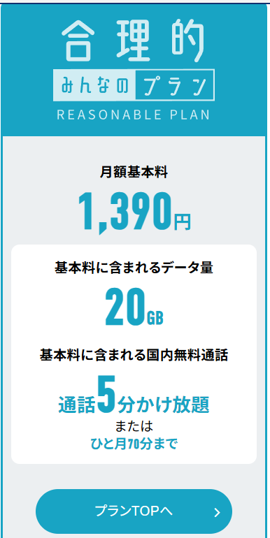 20GB+ 通話料5分かけ放題or月70分無料をセレクト。