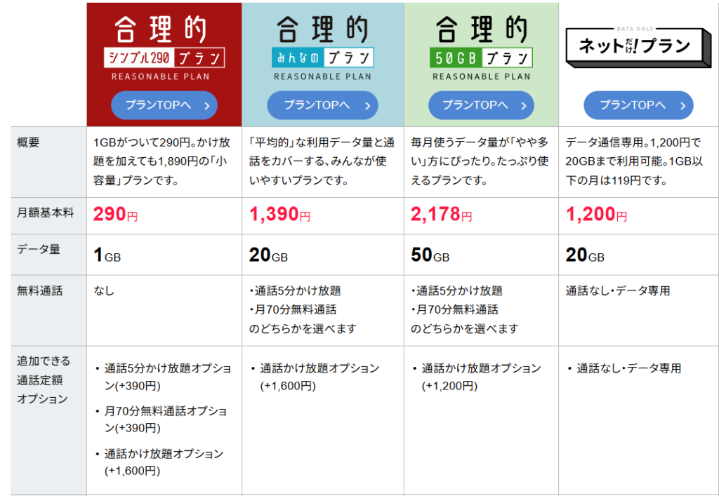 合理的みんなのプランがイチオシ。