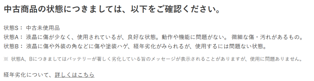 バッテリー状態は購入するまで分からない。