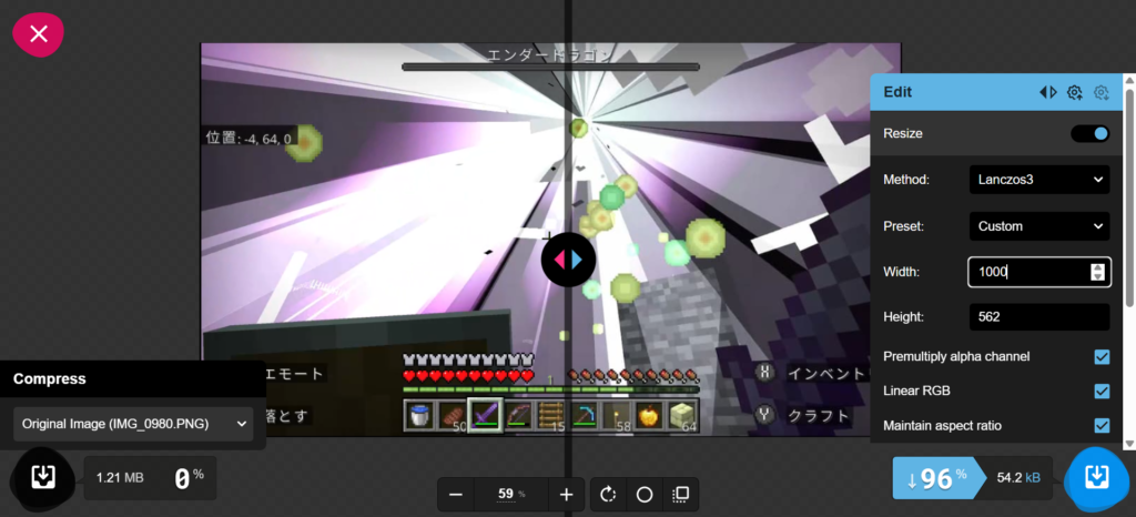 この時点で1.21 MB⇒54.2 kBに容量ダウン。